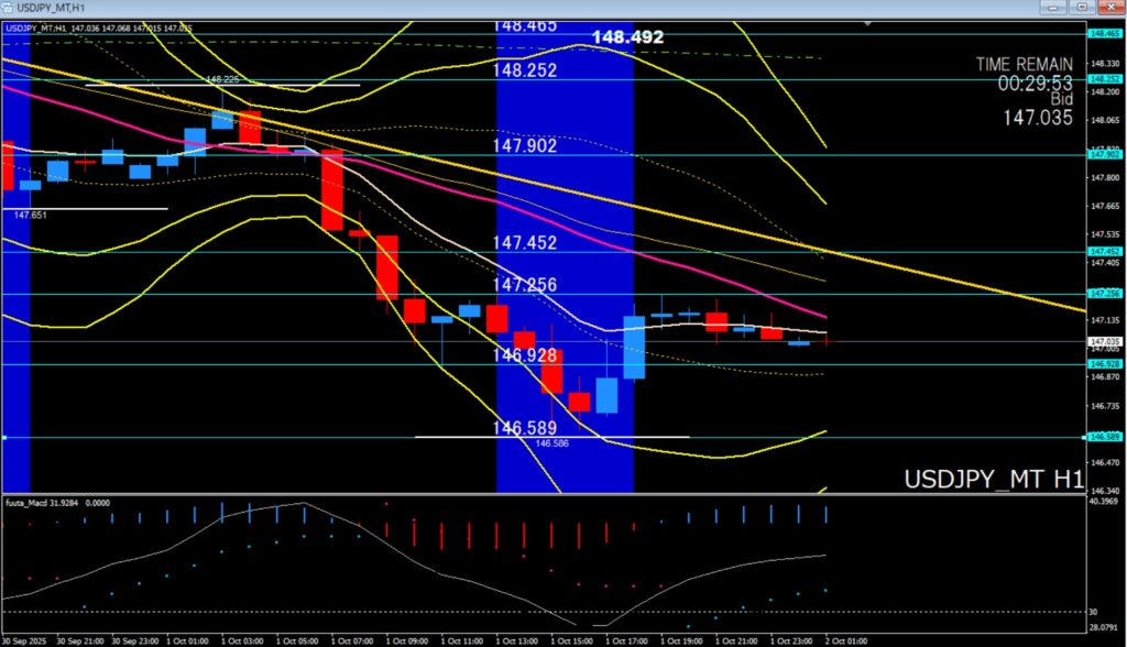 ・米政府機関の一部閉鎖で不安定な相場展開→円買い継続で147円台⇒金曜日の米雇用統計の発表が延期になる可能性が高まっている⇒10月3日(金)の20時45分からライブ配信予定