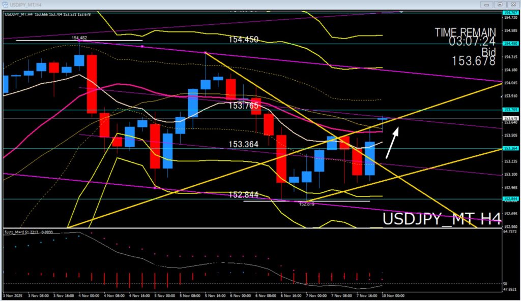 「ドル円は153円49から45付近割れで売りにシフト、154円00から02付近でも戻り売り!買い優勢なら要注意」