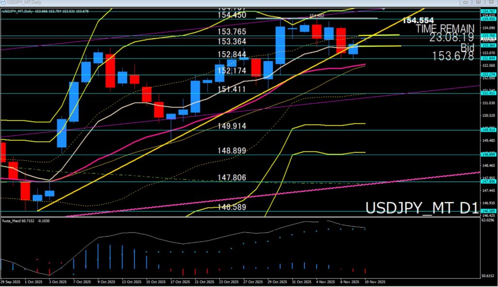 | 押し目買いゾーン割り込んだら売りシフト ⇨ | 153円49から47付近 |