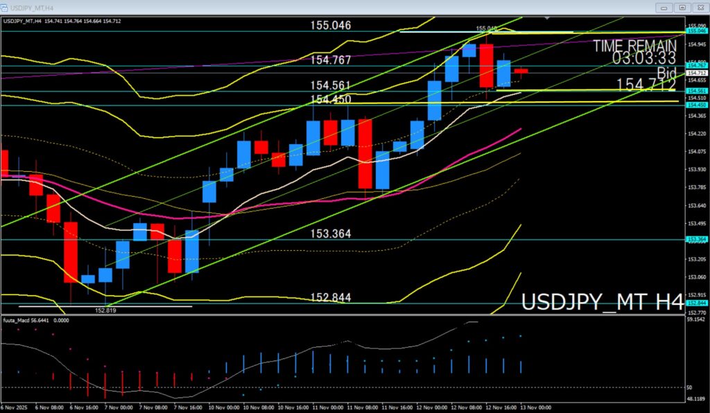 4時間足でも買い優勢、154円65付近、154円55付近では押し目買い狙い!154円80付近を超えてきたら!
