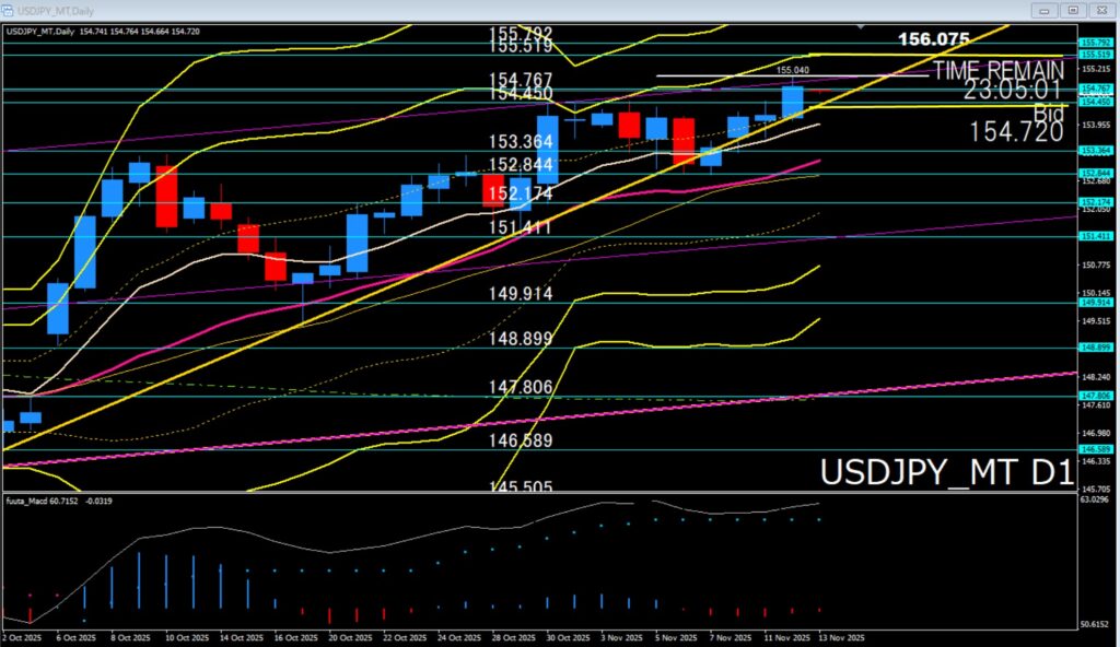 | 押し目買いゾーン ⇨ | 154円50から45付近 |