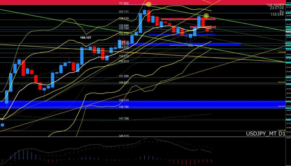 日足の上値ポイントは155円70付近から注意!上昇しても156円00付近まで!