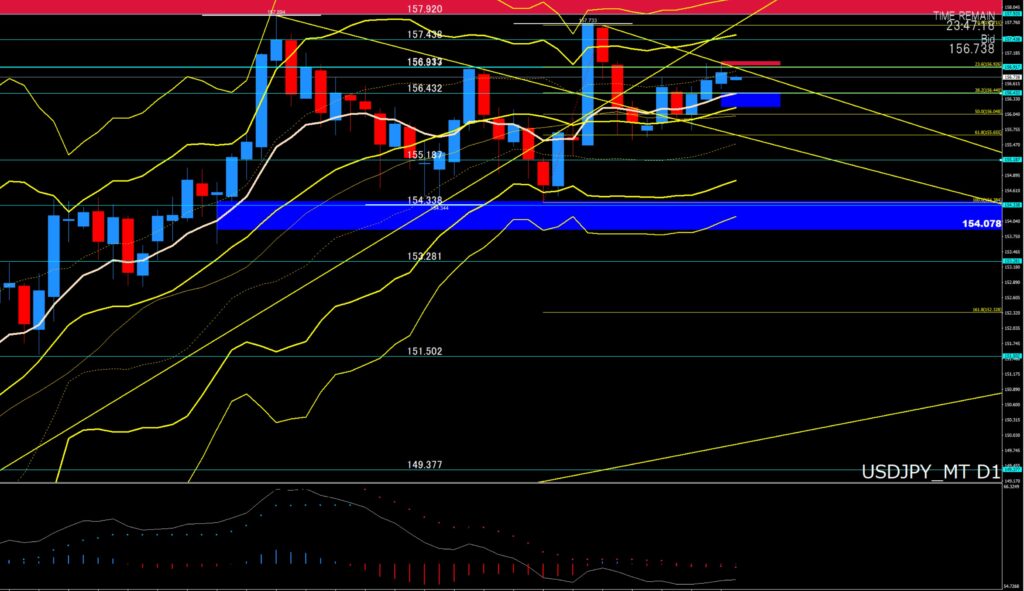| 押し目買いゾーン ⇨ | 156円55から50付近 |