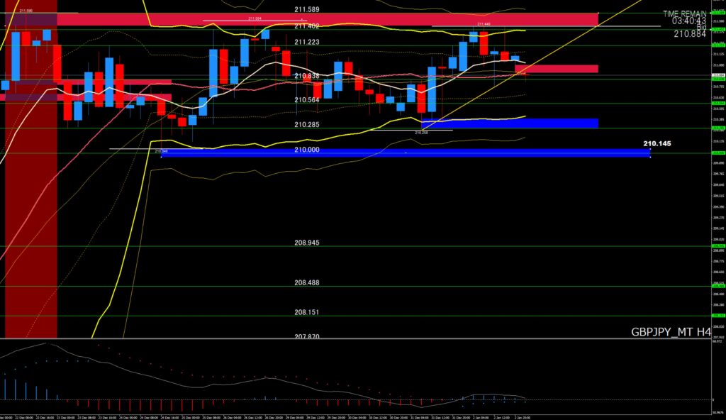 | 4時間足の-2σ⇨ | 210円43付近 |
