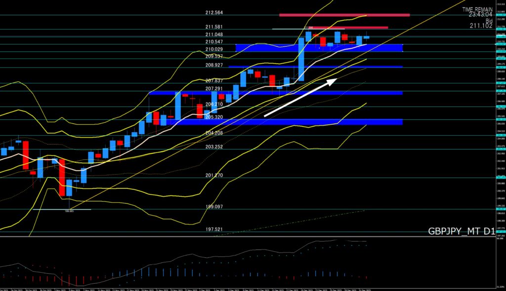 ②「トレード戦略」⇒211円00から05付近に抵抗線、上値が重ければやや売りに注意も210円60から55付近にサポート有り!反発が強ければ上目線継続!