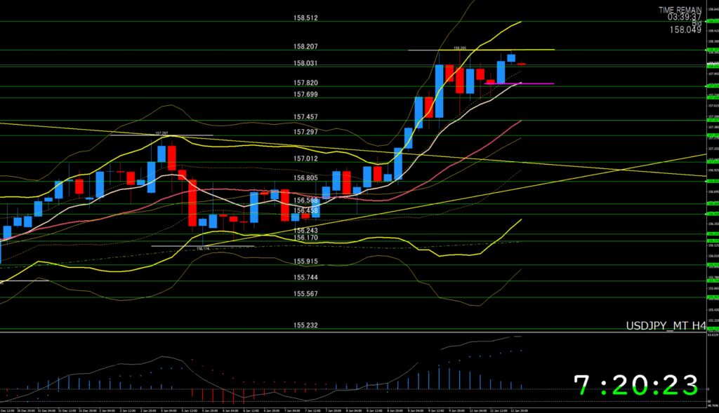 4時間足が変わる11時に高値圏で張り付いていたら更に高値更新する可能性も考えて攻めたいですね!報道などなく素直にいけば158円後半を目指す展開になるか!?