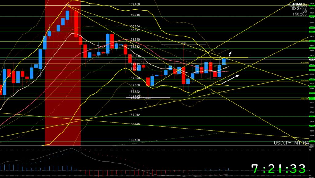 ③「注目レート」⇒(上値ポイント:158円37から40付近、158円55から60付近、158円68付近、158円90付近、下値ポイント:158円10から00付近、157円85付近、157円70付近)