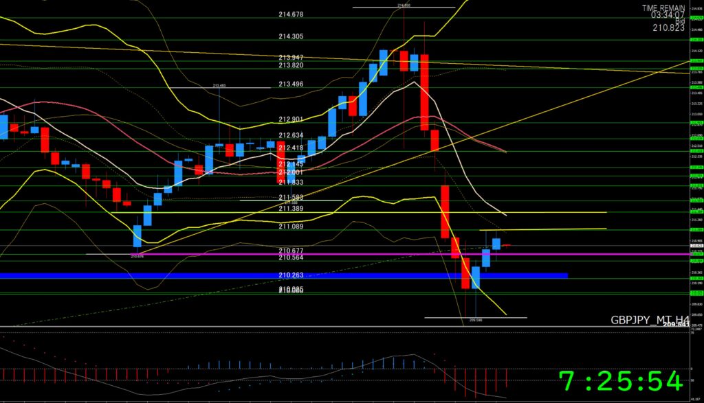 ②「トレード戦略」⇒下ひげ陽線が連発も上値が重い感じ、210円80付近、210円68付近がサポートで目先は上目線より、どこまで買い戻しが続くか?211円台乗せてきたら211円10から15付近、211円35付近が上値ポイント!買戻しの流れになれば211円50から60付近まで戻せそうですが、、、