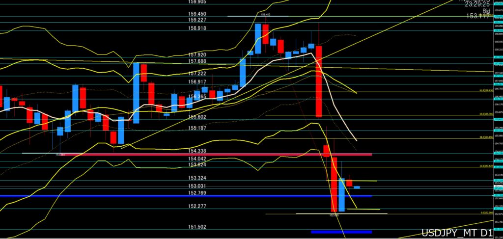 | ここを割り込んだら下落 ⇨ | 153円00付近 |