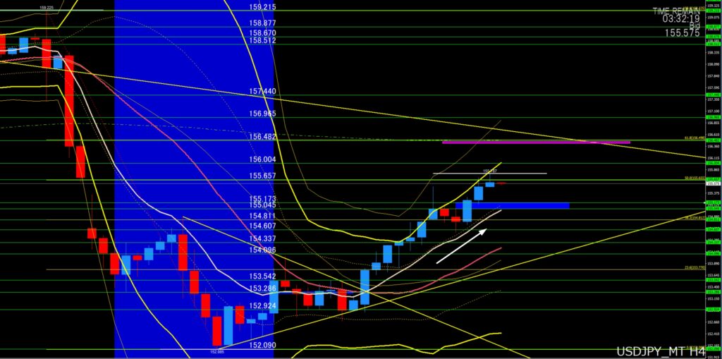| ここを割り込んだら下落 ⇨ | 155円55から50付近 |