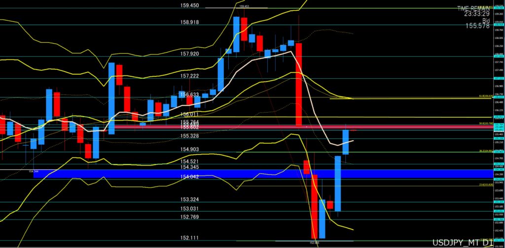 | 反発するか! ⇨ | 154円85から80付近 |