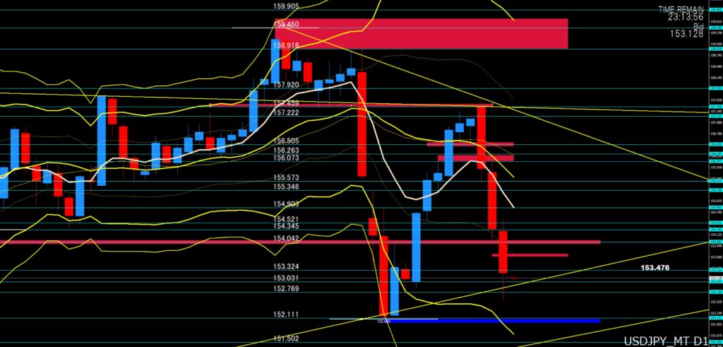 もしこのまま上昇した場合の日足の上値ポイントは153円60付近、153円80付近、ここを超えてしまうと一旦は買戻し流れになりそうですので注意しておきたいところ!