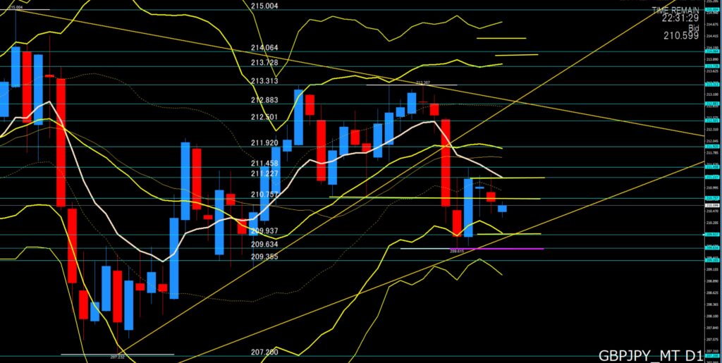 | A | 210.50~40(浅ければ買い) | 210.70~80 | 安値更新 |