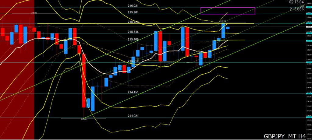 トレード戦略:本日は、日足、4時間足が上目線、下位足では下値ポイントでは押し目買い狙いで攻めたいなと考えています。ただ気になるのが215円70付近はかなり上値が重かったゾーン、東京時間は超えていけるか??
